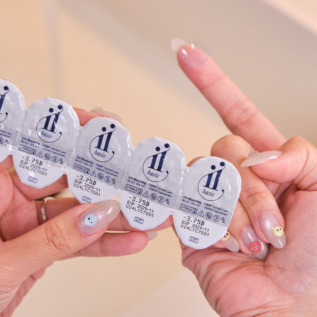 Designed to be easy on the eyes, Basis daily disposable contact lenses contain 55% water and a precise 45% blend of three hydrogel active ingredients that organically retain moisture to form a soft and supple lens. Each contact lens comes in a pure pH-balanced saline solution free of additives and demulcents.